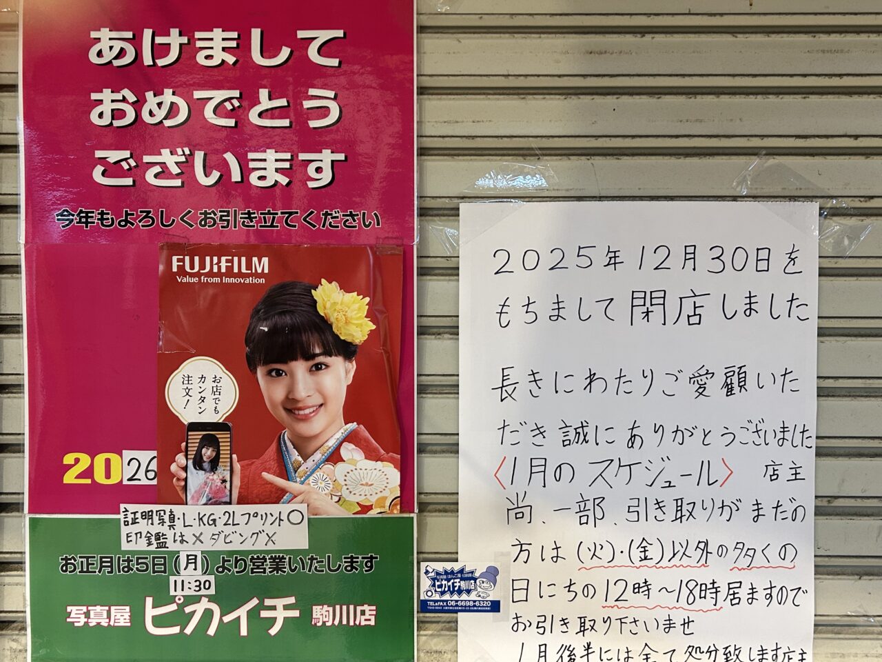 【大阪市東住吉区】駒川商店街の写真・印刷の名店が幕引き。「ピカイチ駒川店」12月30日で閉店