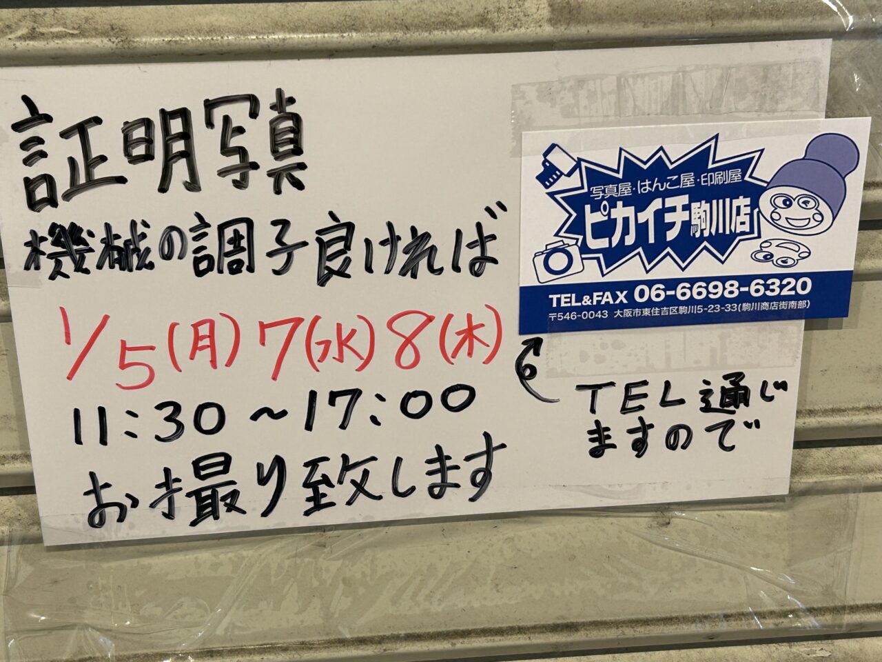 ピカイチ駒川店は、写真撮影や証明写真、年賀状印刷、名刺やはんこの作成など、地域の暮らしに密着したサービスを幅広く提供してきました。商店街の中でもひときわ目立つカラフルな看板と、昔ながらの写真屋さんらしい佇まいは、多くの人の記憶に残っているのではないでしょうか。