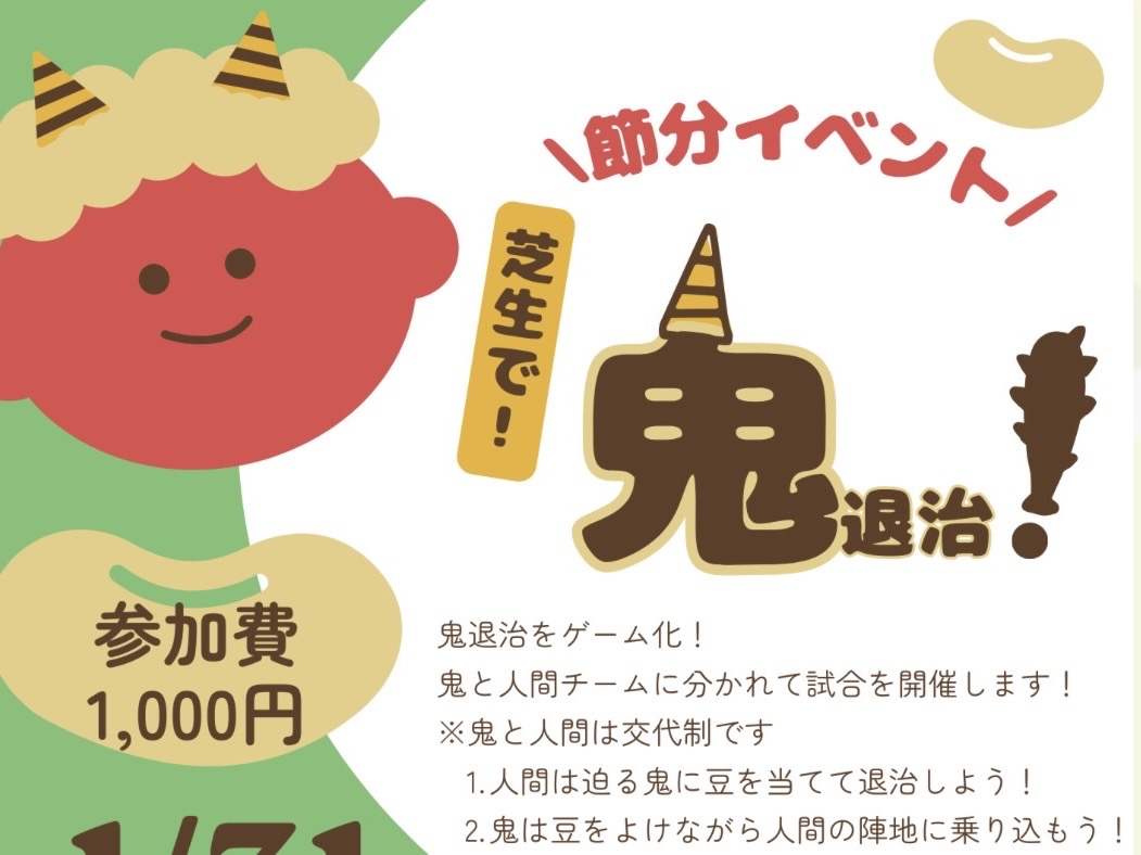長居公園内にあるフットサルパーク長居で、子ども向けの節分イベント「芝生で鬼退治!」が2026年1月31日(土)に開催されます。今回のイベントは、昔ながらの鬼退治を“ゲーム化”した体を動かして楽しめる内容となっており、元気いっぱいの子どもたちにぴったりの企画です。