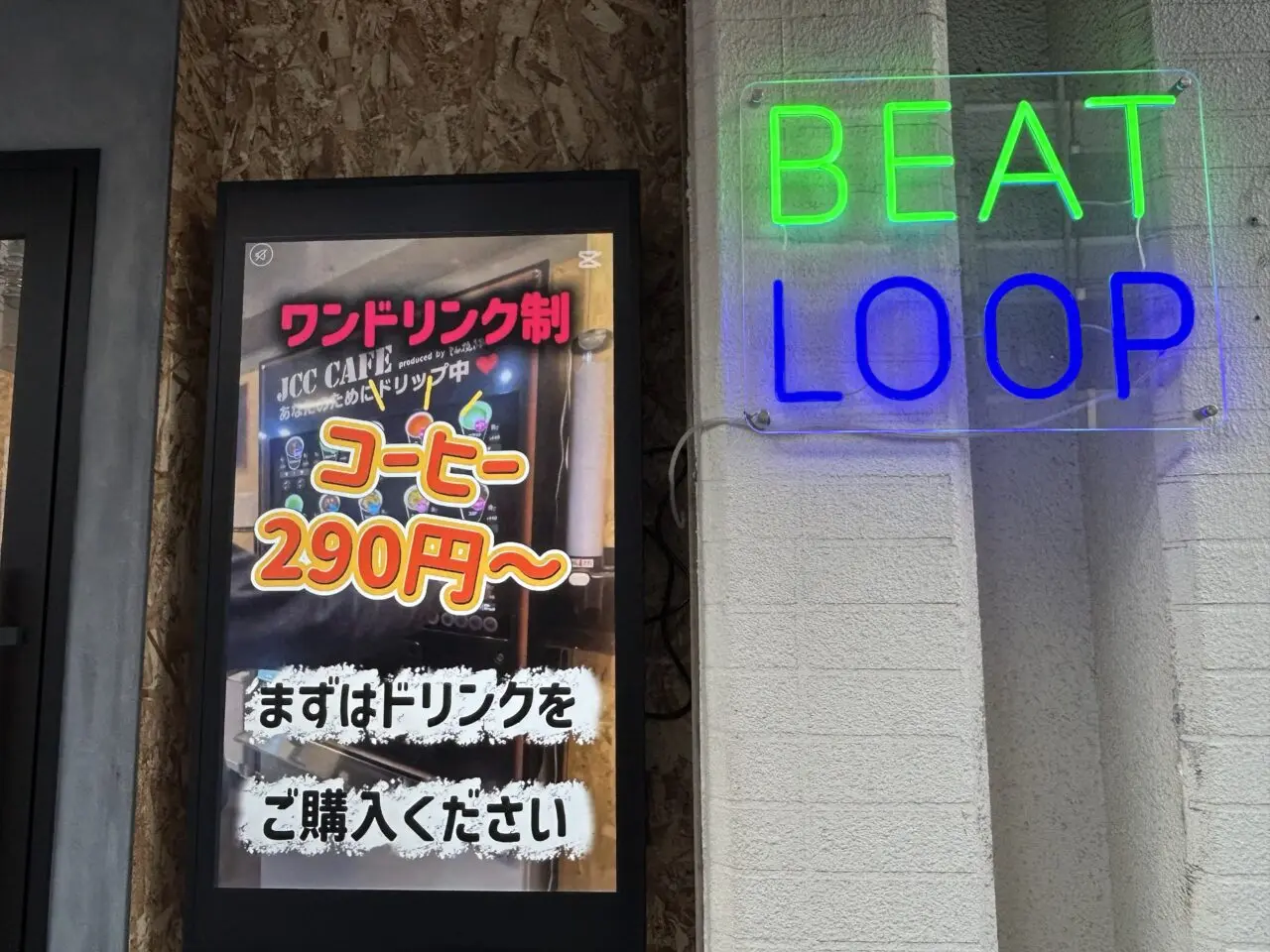 あびこエリアを歩いていると、派手なネオンサインが目に入りました。「BEAT LOOP」と光る看板、そして店頭には「セルフカフェ」「ホットコーヒー290円~」「24時間営業」の文字。先日こちらでご紹介した「BEAT LOOP」ですが、調べてみると2025年12月25日(木)にオープンしていたことがわかりました。