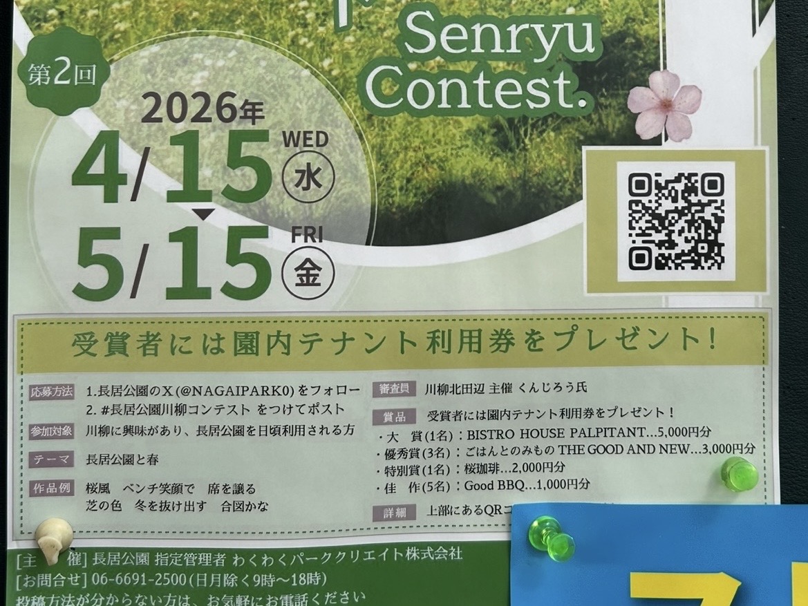 開催期間は2026年4月15日(水)から2026年5月15日(金)まで。応募方法はとても簡単で、長居公園の公式X(旧Twitter)アカウントをフォローし、「#長居公園川柳コンテスト」をつけて投稿するだけ。気軽に参加できるのが魅力です。