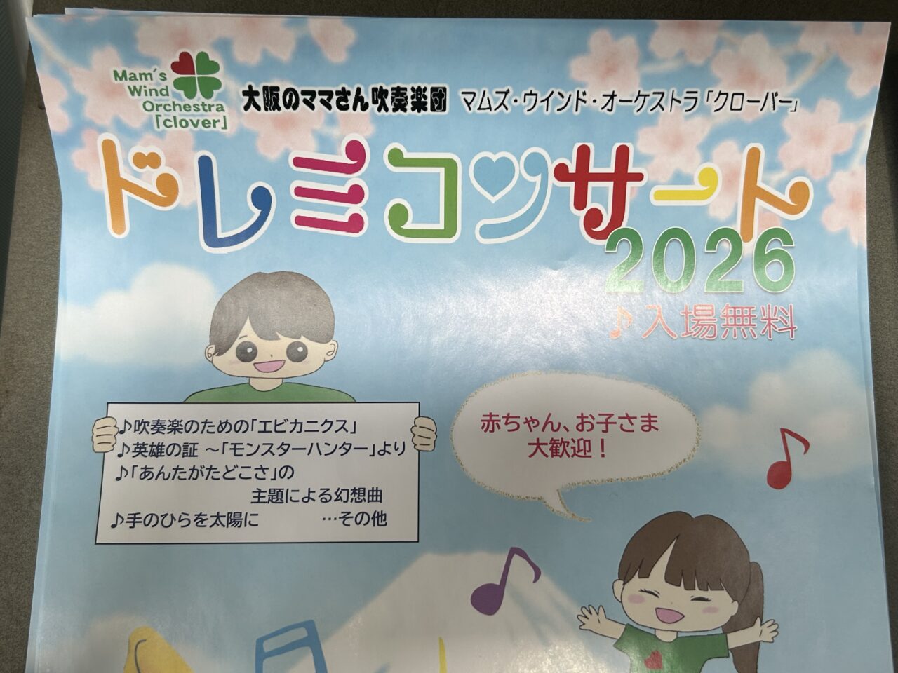 【大阪市住吉区】入場無料&赤ちゃん大歓迎!ママさん吹奏楽団の癒しイベント「ドレミコンサート2026」開催へ