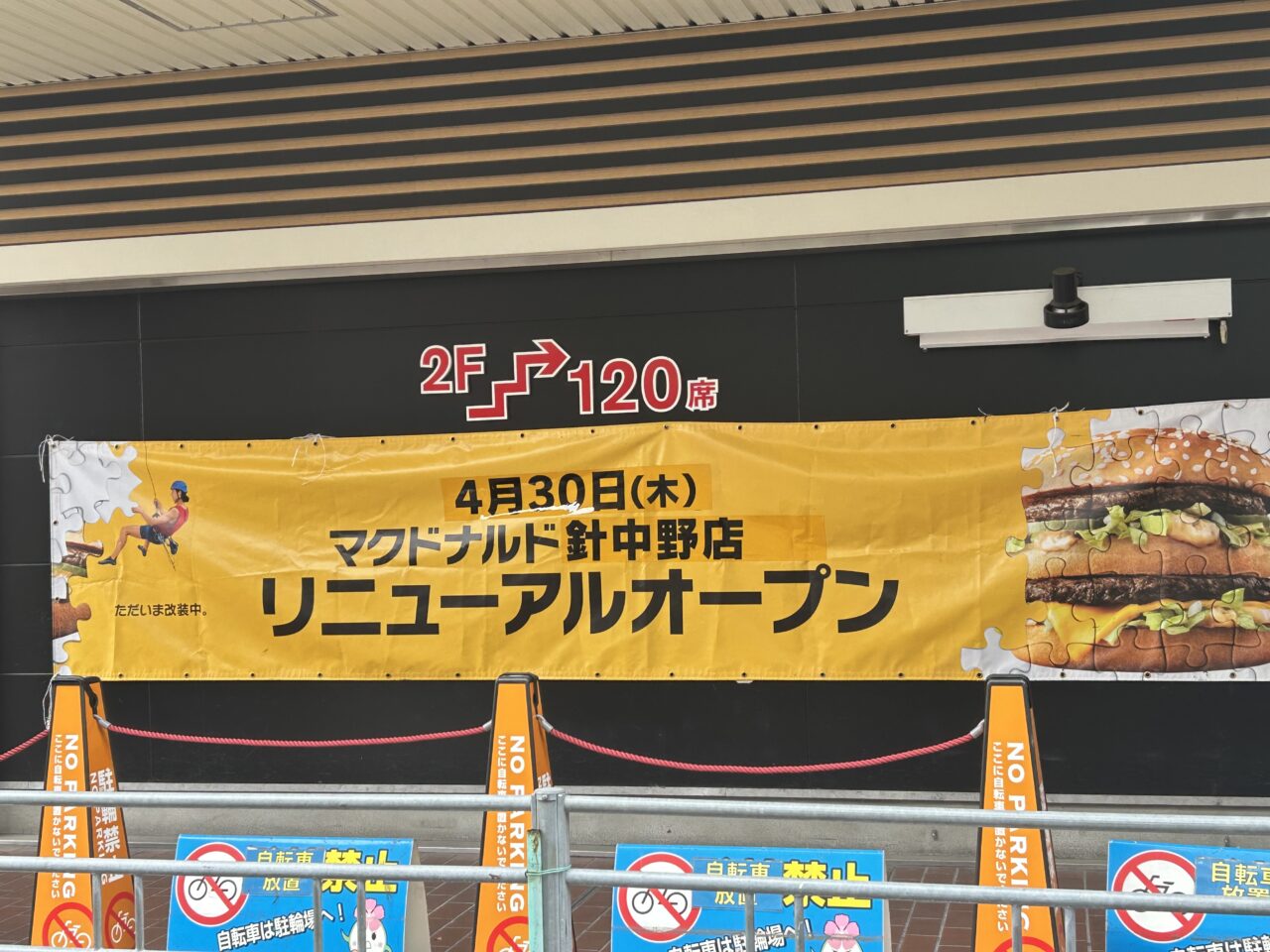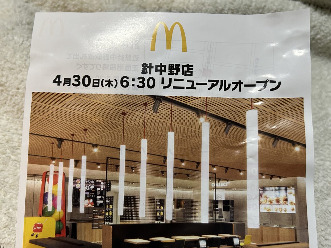 針中野駅すぐのマクドナルド針中野店が、2026年4月30日(木)6:30にリニューアルオープンしました。